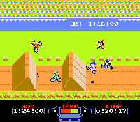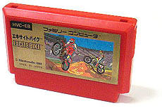 思い出の逸品 ファミコンです、オフ車のゲームで独特なエンジン音を響かせすぐにオーバーヒートし何度も人間につまづいて転倒しました。 淡々としたゲームだったと記憶しています、当時コースを自分で作れるこのゲームは画期的でした、あとは対戦ができれば文句なかったのかも(ディスクシステム版では対戦できました)。 |
