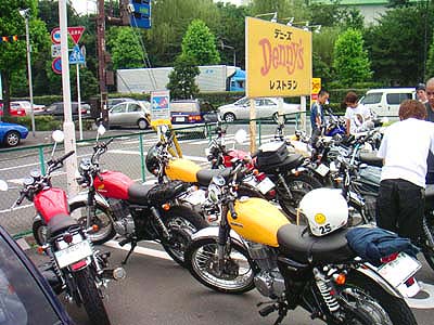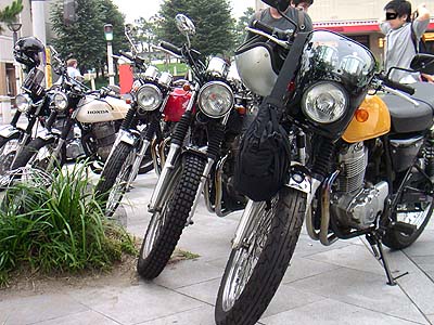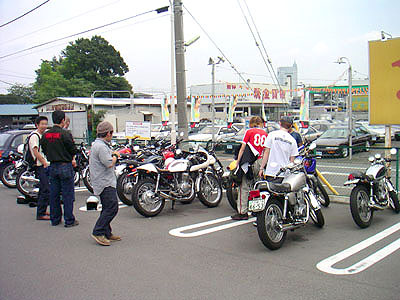 | 「第一回弁当無しミーティング」 天候不順のため危ぶまれていた弁当無しミーティングでしたが、当日は快晴とまではいかないまでも何とかお日様の下開催することができました。 AM10:10分、主催者だったコトもあり集合時間よりも早く来てみるとすでに赤いSSが一台止まっています、福島からおこしの砂徒さんです、中でレポートを書いていたとか、学生さんは大変です。 このあとも続々と集まり11:30 にはほぼ全員(砂徒さん。koppeさん、ながやまさん、いかたろさん、たかみさん、ケンタさん、PRSさん、ハヤシ)が集まりファミレスへ雪崩れこみました。 しかし席についてメニュー何ぞを見ていると赤いSSが一台!?やべ〜キョウタロウさんだ、つづいてNIKOさんが入店・・冷汗。 素知らぬ顔でご挨拶。 スミマセン、名簿作ってたんですが忘れてきました、その上こんなに集まるものだとはおもわなかったので「5」以上の数は沢山としか認識できない自分には全体を把握することはできませんでした汗 そんなこんなで店内でバイクな話をしていると今度はSR乗りのアキヒトさんから電話が!なんと砧公園をSR乗りのsimaさんと二人で周回中だとか!!あ〜「告知」は砧公園集合のままだったもんな汗(このときウルBさんも周回中だったことが後に判明、スミマセン汗)、さらにこの後SR乗りのひっき〜さんも合流しファミレスでは合計13台が集まることになり、あまりかかわりを持ちたくないような集団へと変貌を遂げました(下の写真参照) このあとメンテ大会(某氏のバックステップが脱落したとかしないとか)に合流するというSR組と別れ一路台場へ、お台場ではどこかオサレにカフェでなどと考えていたのですが10人で入れそうな店はなく駐車場所で各自情報交換を行っていました。 ミーティングの様子 ![]() 写真を見てもらうとわかりますが話題の中心はいかたろさんのアーバンカフェとたかみさんの黄色い(?)SR、みなそこを中心に集まっています、たかみさんのSRに至ってはわずかにテールが顔を覗かせているだけです。 ![]() 反対側には色つきSSが群れていました、なんだかカナブンのようなムシが樹液に群がっているようにもみえます笑 ![]() 台場での様子(ツラがわれれるとまずいと思うので1名の方に仮面を着用いただきました) 到着時はファミレスに集まった9人+ウルBさんにも合流いただき10名の大集団になりました。 が、遠路はるばる起こし頂いている方もおおく1時間ほどで遠距離組とは別れ勢力は半分以下の4人になってしまいました。 さらに1時間後にHIRO_KIさんが合流し(上の写真)5時過ぎまでバイクネタを中心に140ギガの動画がどうの等とりとめのない話で盛り上がりました。 しかしおそるおそるながやまさんが切り出した話題が「やっぱりみんなそうなんだ」的に一番盛り上がったというのはその場だけの秘密。 終わってみて。 ミーティングという名目で集まっただけなので成功とか失敗とかがあるものではないのですが、今までネットでのつながりしか無かった方も多くオンライン上の掲示板やアップされた画像からは得られない情報交換をみなさんそれぞれの時間で行っていただけたのではないかと思います。 今回のミーティングでそうした場を提供できたのではないかという意味ではやってみてよかったかな?と感じました。 また機会を見てミーティングは企画していきたいと思いますので、その時は当日参加いただいた皆さんを始め全国の(?)CB400SSオーナーの皆さん、シングルオーナーの皆さんよろしくお願いします。 今回の参加者 CBSS:砂徒さん、HIRO_KIさん、koppeさん、NIKOさん、ながやまさん PRSさん、いかたろさん、ウルBさん、kyotaroさん、ケンタさん SR:たかみさん、simaさん、アキヒトさん、ひっきーさん 以上14名+ハヤシの15名の参加となりました、みなさん本当にありがとうございました&おつかれさまでした。 |