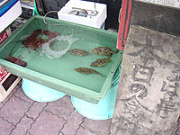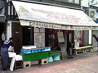 三崎でマグロ!と考えてたので朝は抜きました、到着したのは13時過ぎ、いい加減腹が減りました適当な寿司屋を探しているとこんな店が・・お魚屋さんではありません。 店先には本日の食材達が・・伊勢海老とカワハギかな? 店の前には雑誌やらテレビやらに取り上げられたとはり紙がされています、前にも見かけて気になってたけどそういう店だったんだ。 店内を覗くと厨房の奥のほうにモンゴル人のような店主らしき人物がいます。 |