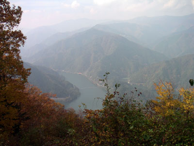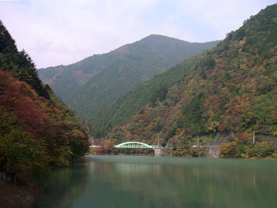 ↑奥多摩湖紅葉の様子、まだ緑も多い。