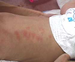 2000. 12. 07. (13ヶ月) お風呂に入るとお肌が真っ赤っか。 ブツブツもあるの。 夏にもなったんだけど、その後卵を控えていたんだよ。 でもお医者さんに試してみましょうって言われて、ちょっとだけ、 卵ボウロを食べてみたんだ。