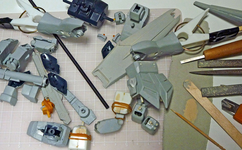 そんな感じで、せっかく単関節を採用して一年戦争時代のMS風味を持ち直したのに違和感のあった部分を改造し始めました。