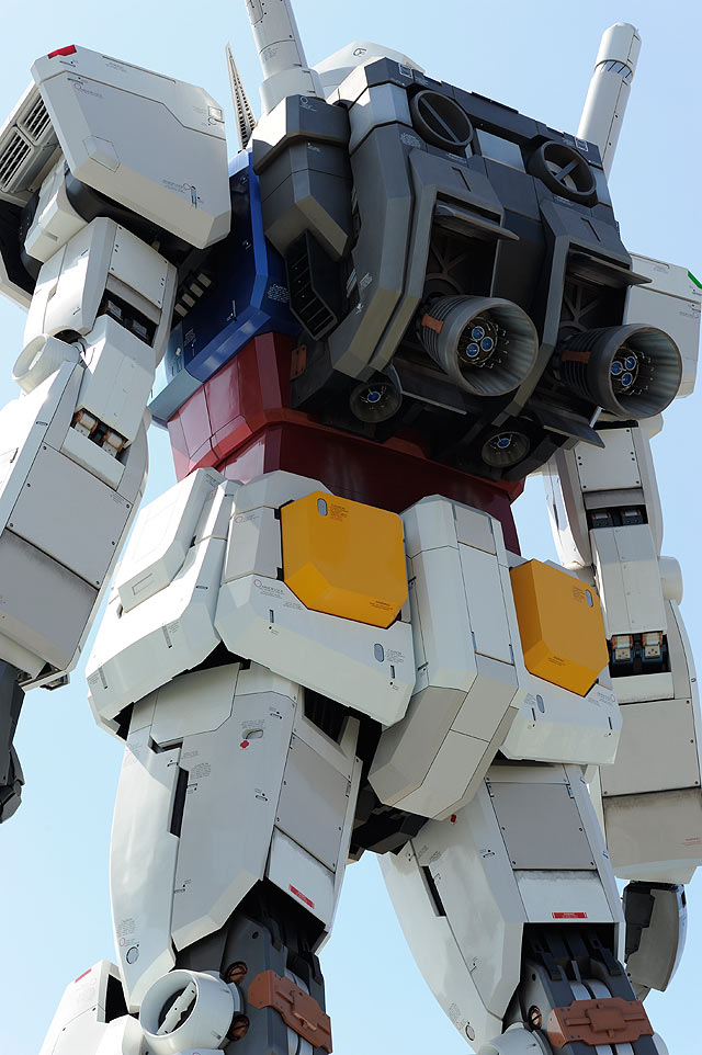 撮っていたら、直射日光でふ〜らふらになったので待避。弾幕薄いよ! なにやってんの!? と思ったら、弾幕は薄いがドリンクは高いのであって財布が薄くなった。 休憩しながら遠く眺めると、なんだかオモチャに見えてくる。 実物大の巨大ガンプラなのだからそりゃあオモチャなのだが、なんとなく、モノとしてオモチャだ。
