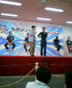 | 7/16(日) 昨日のプレゾン、充分楽しんで帰ってきましたー!今回はストーリーを重視したと聞いたのでそれを期待していたのですが、思ってたよりオチが「?」って感じで、ちょっとガッカリ・・・。せっかく出だしやキャラクター設定は面白かったのに、それを生かしきれないまま終わってしまった感じがしたのよね〜(−−; もう少し伏線をうまいこと張るとか、オチにあと数分だけでも時間を割くとかすれば、もっと良くなったと思うんですよ。ま、そこが残念だったけど、全体的にプレゾンらしさもあって良かったんじゃないかなぁ。ただただ派手なのがプレゾンってわけじゃないからね。 まず、ストーリー性を重視するなら役名を作って欲しかった。あれだけ作りこんだキャラ設定があるのに、そのままの名前では話に入り込めない気がしました。もちろん名前はそのまま使った方がわかりやすいのかもしれないけれど、どうしても普段のイメージなどが入ってきてしまうので、日本人名なのに凄腕の元犯罪者という設定は厳しいように思えまいた。ついでに言うならば、ハセジュンを『少年(小さな子供)』とは思い難かったです(^_^;ゞ その辺の演出も日本人離れしてたんだから、おもいきって外国風の役名を付けちゃえば良かったのになぁ。 さておき、本日は予定通り多摩川競艇場に行ってきました(*^◇^*)ゞ もちろん、一番の目的は串モツ(笑)。いや、好きなニオシ選手が出てるので、それを見に行ったという理由もあるんですがね。 ガラス越しの有料特別観覧指定席をキープしつつ、外にある(と言っても屋根はある)特設ステージで、選手たちの生の声を堪能してきました。しっかり朝から行ったので、ステージから2列目の席を無事GET☆バッチリ観られましたよ。ついでにお笑いライブ(もちろん無料)で、麒麟と笑い飯も楽しんできちゃいました。いやー、選手たちが小さいだけに、このお笑いコンビの背が高いこと高いこと!ビックリでしたよ。ネタも面白かった!友達も楽しんでくれたようで何よりです。お笑い好きということで誘ったんだけど、遠いトコ大変だったのに、わざわざ来てくれてありがとうね〜ヾ(^ー^)ノ 楽しかったけど疲れたよっ(>△<)! |