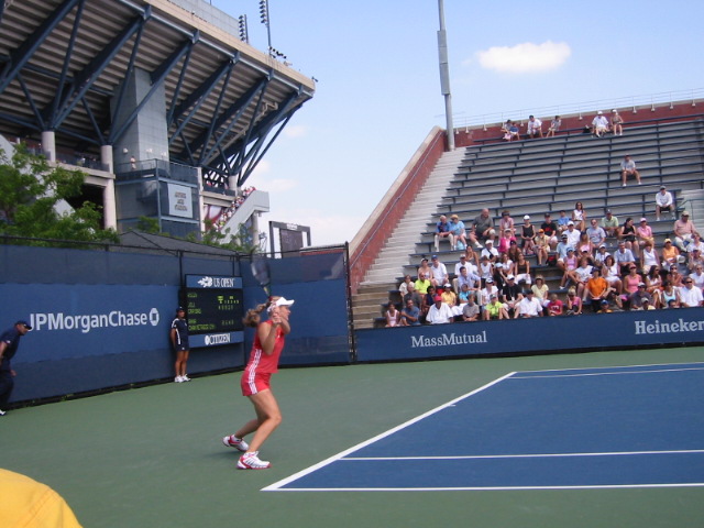 競り合いの末、北田さんとの初戦。ふたりともサービスが入らず、ダブルフォルトが多い、しまりのない試合になってしまった。6-4 でかろうじて勝利。