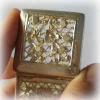 手作りシルバー(70%)の透かし彫りのギフトボックスです。5個しかないですから売り切れしだい終了です 1000円 |
