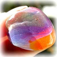 2001年7月22日 お手伝いに来ていただきました お手伝いの方にご協力いただいてから、二週間。オーダーも全部作り 終わりました。信じられない!目標であった7月中にお届け、が 果たせそうです。ほんとに長期に渡ってお待ちいただきありがとうございました。 明日はもしかしたら今回の制作については最後のお手伝い日になるかも? さて、ところで、きなりガラスを使ってみました。 掲示板にも書き込みありましたが、私も同感でした。 なんというか、溶けるのに時間がかかるのは、佐竹のソーダガラスのような 感じ。それで、溶け始めると急激に柔らかくなり、液化してきます。 おっとっと!とちょっと炎から遠ざけるとまたすぐに固くなるような 感じで、ちょうどよい粘りのある柔らかい状態をキープするのには コツがいるのかも、という印象です。佐竹のガラスよりも、空気や 異物の混入は少ないように思います。パステルカラーなどもきれいだし 使ってみたいけど、今のところ私の手には佐竹が合ってるようでした。 こんど作品作ったらアップします。