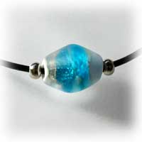 「銀に蒼のペンダント」 不透明の白ベースに銀箔。その上にスカイブルーやピンクなどが美しく流れています 6000円 |