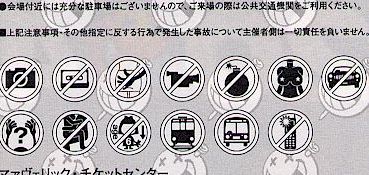 ■↓届いたチケの封を切る時に一緒に(爆)興奮しすぎ ■↓裏面の諸注意アイコンがナイス!★★はOK(爆笑)?