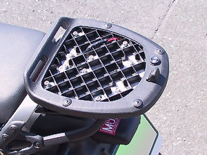 | ラックとベースをそれぞれ固定するアルミ板も5mmの厚さに強化。 パニアベース自体の強度は折り紙付きとなるぐらい強化されましたが ラックを固定しているビスはタンデムバーで3本、 先端を支える支柱はABS製ですので 実際には何kgの物を積み込めるのか、それが残りの疑問点です。 |