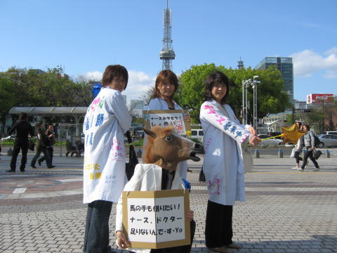 「寄せ書き白衣を作りました!馬も参上!」